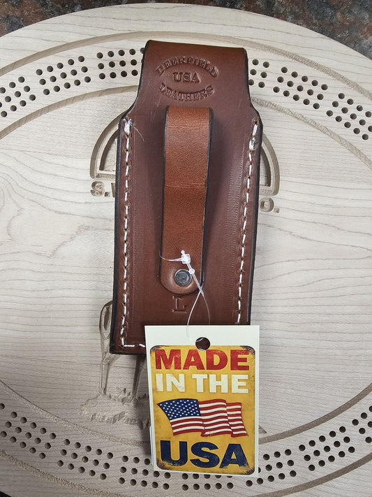 Deerfield Leathers Katahdin Knife Case Medium Brown Knife & Multitool Holster Made in Maine USA