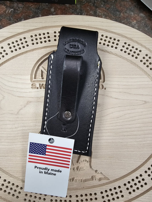 Deerfield Leathers Katahdin Knife Case Medium Black Knife & Multitool Holster Made in Maine USA